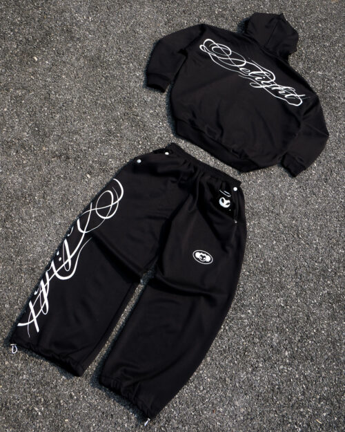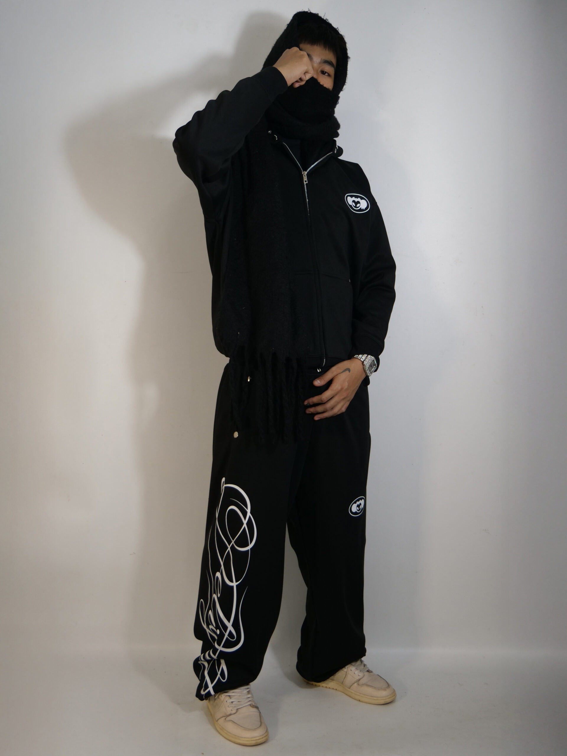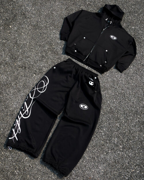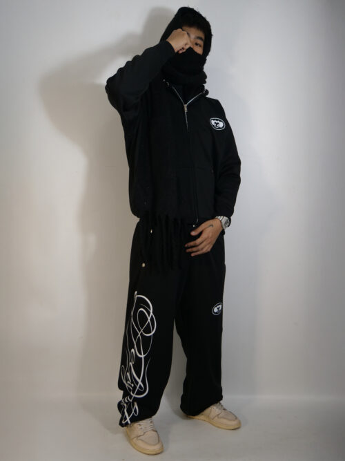 Set hoodie zip và quần nỉ form suông unisex, chất cotton cao cấp dày dặn, mềm và thoáng. Quần nỉ 480gsm lót nhung giữ ấm, đứng form đẹp. Điểm nhấn line cườm đá đính thủ công lấp lánh cùng chi tiết kim loại tạo vibe streetwear nổi bật.