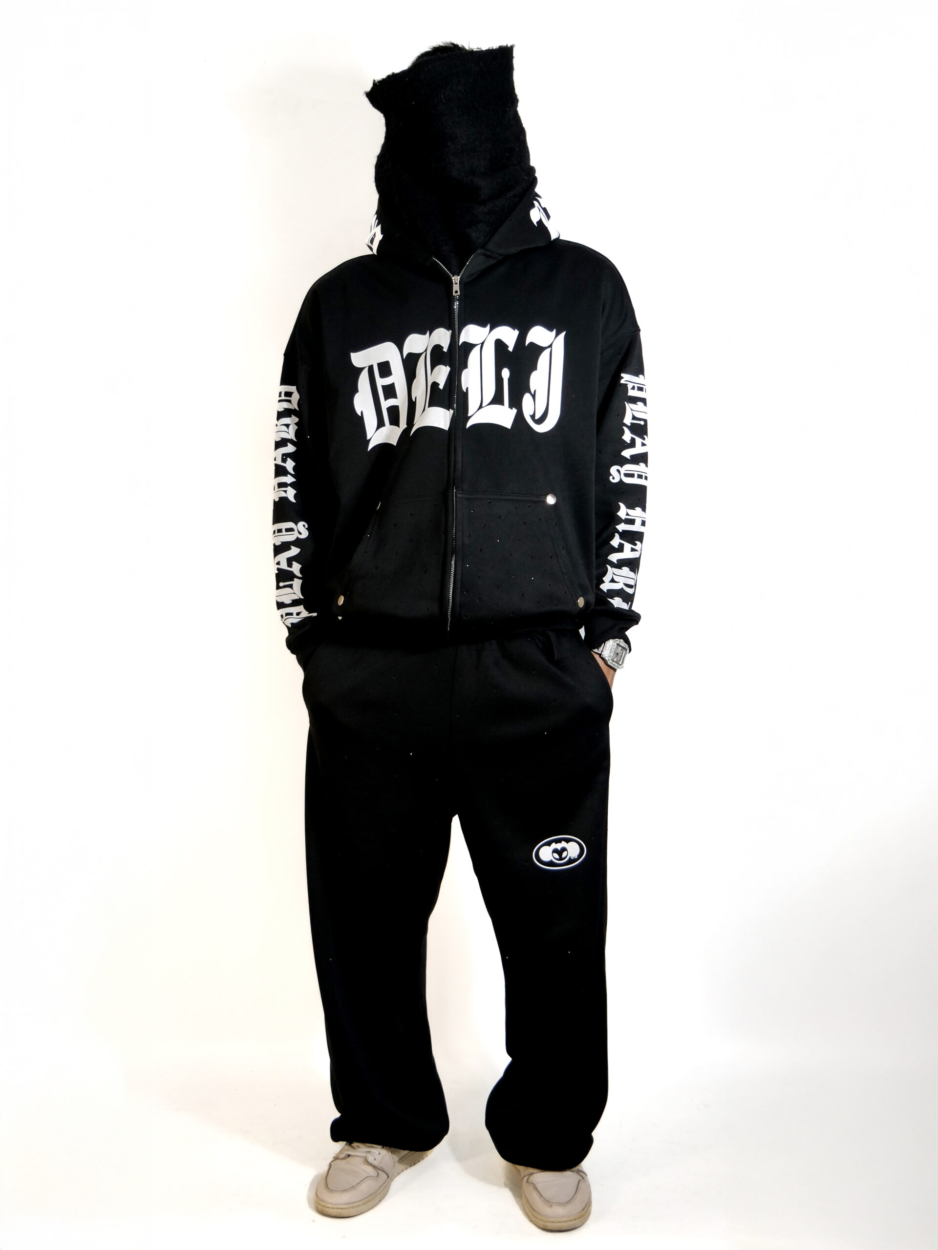 Áo hoodie mang tinh thần Gothic – Streetwear, thiết kế tập trung vào điểm nhấn bling bling nổi bật nhưng vẫn giữ được form mặc hằng ngày. Phù hợp cả mặc riêng lẻ hoặc phối set.