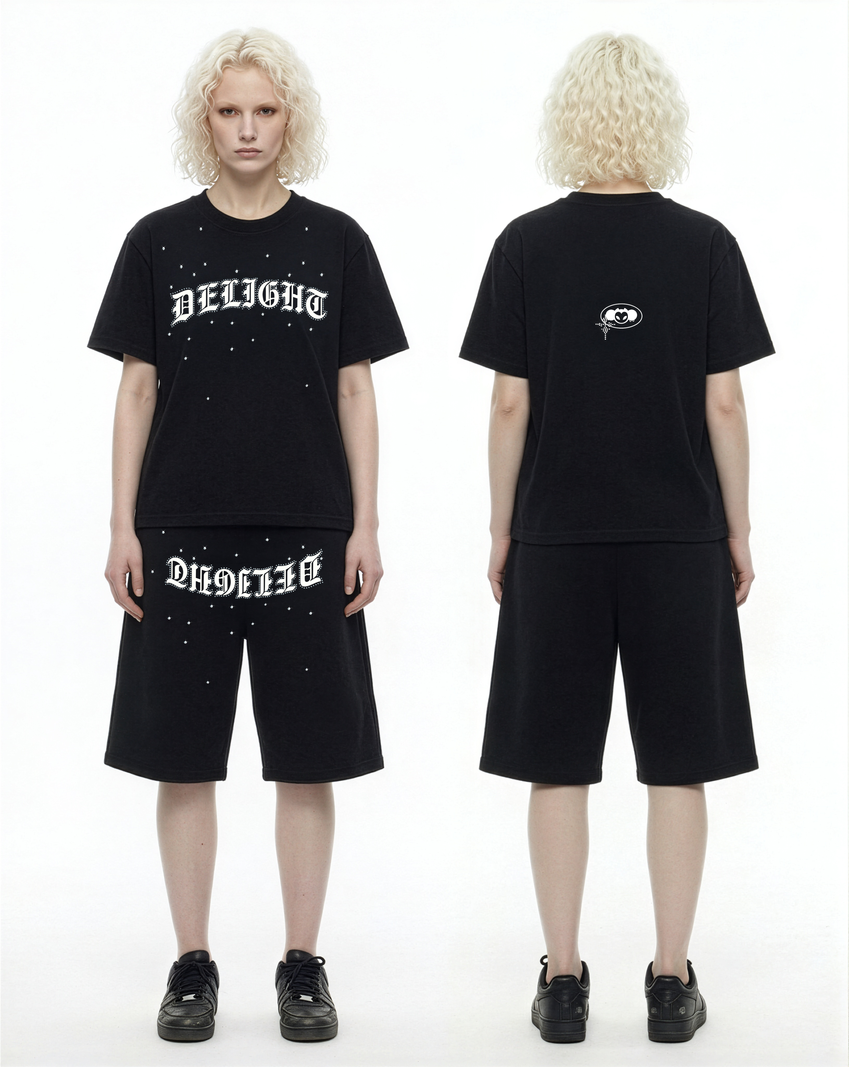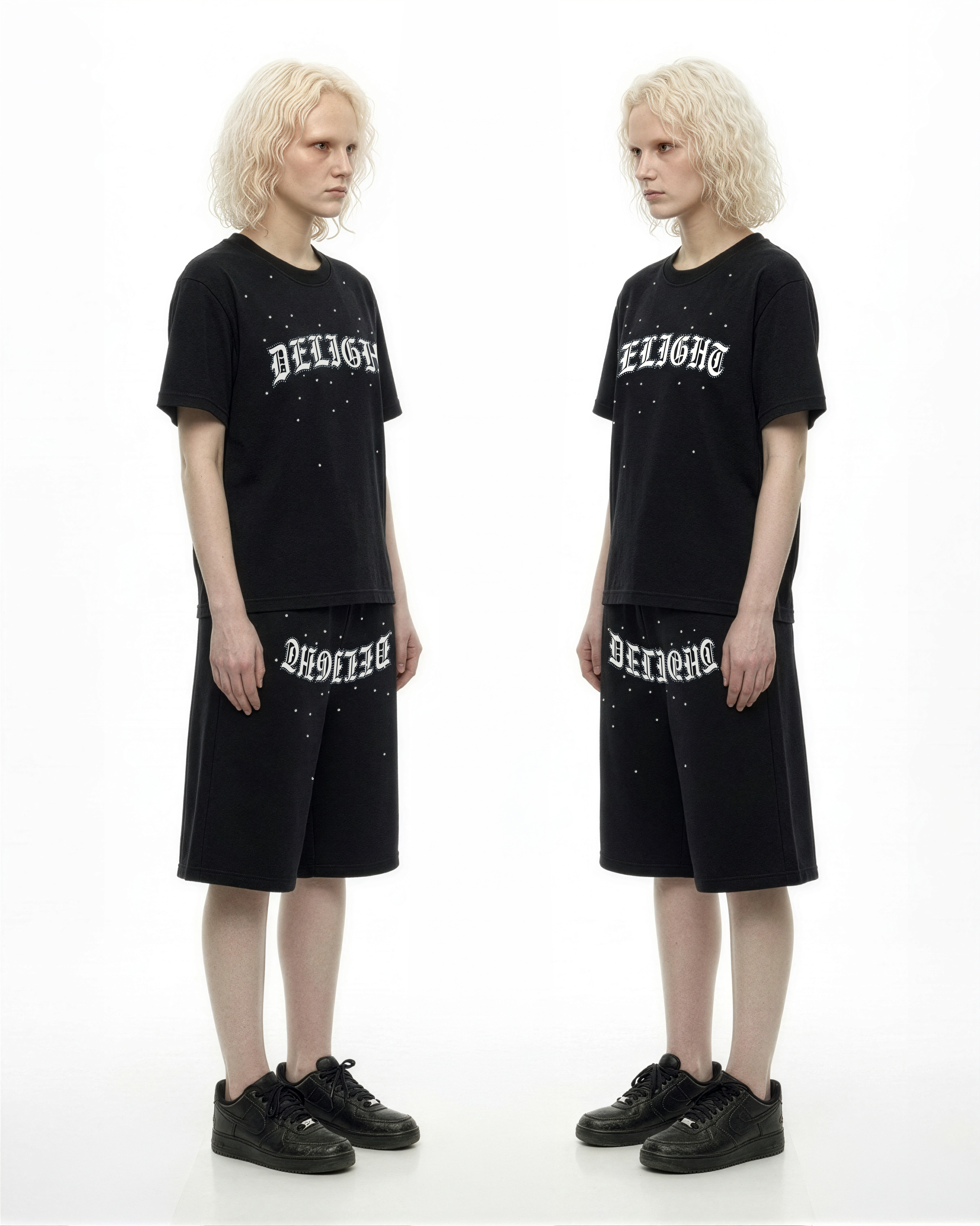 Đúng như tên gọi Night Sky, bộ trang phục tái hiện vẻ đẹp của bầu trời đêm huyền bí. Các viên đá Rhinestone được sắp xếp như những vì sao lấp lánh trên nền vải đen sâu thẳm, kết hợp cùng hệ chữ Gothic đặc trưng, mang lại vẻ ngoài vừa lôi cuốn vừa cá tính.