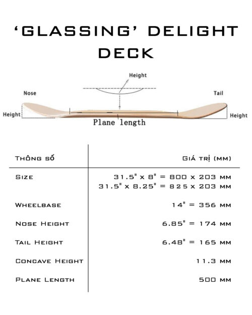 Skateboard deck Việt Nam – Delight SS25 Glassing Deck kèm griptape, mang phong cách streetwear hiện đại. Bề mặt tráng gương nổi bật, công nghệ ép gỗ keo lạnh tăng độ chắc chắn, bền bỉ và phản hồi tốt khi pop. Thiết kế form mới với flick cong hơn giúp thực hiện trick dễ dàng, chính xác. Có sẵn size 8.0 & 8.25, tối ưu cho thể trạng người Việt. Đây là ván trượt chất lượng cao, phù hợp cả người mới bắt đầu lẫn skater chuyên nghiệp tìm kiếm sự cân bằng giữa hiệu năng và thời trang.