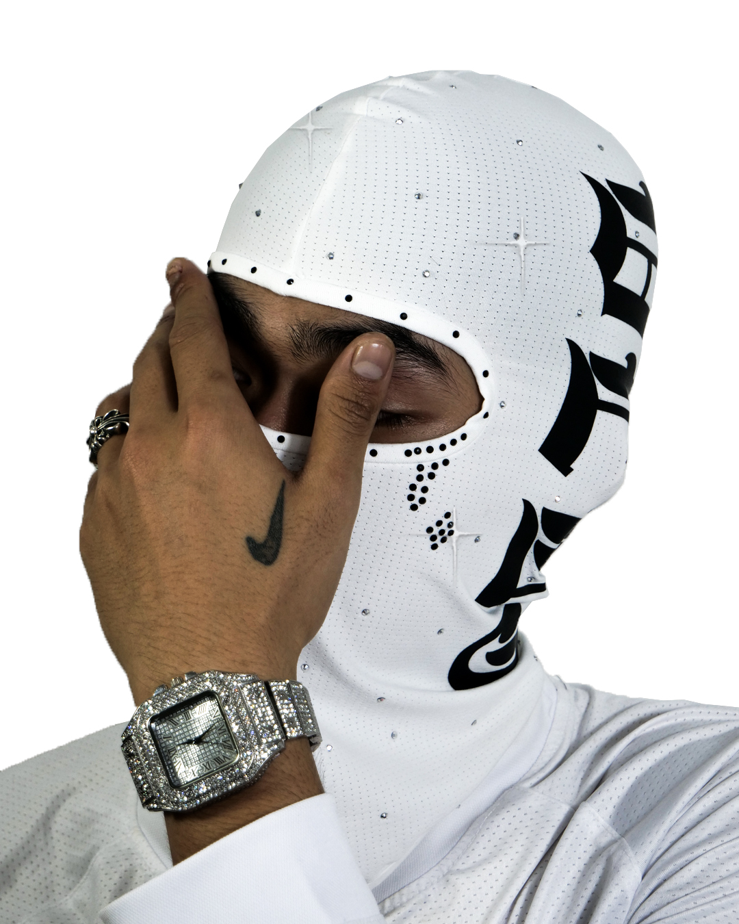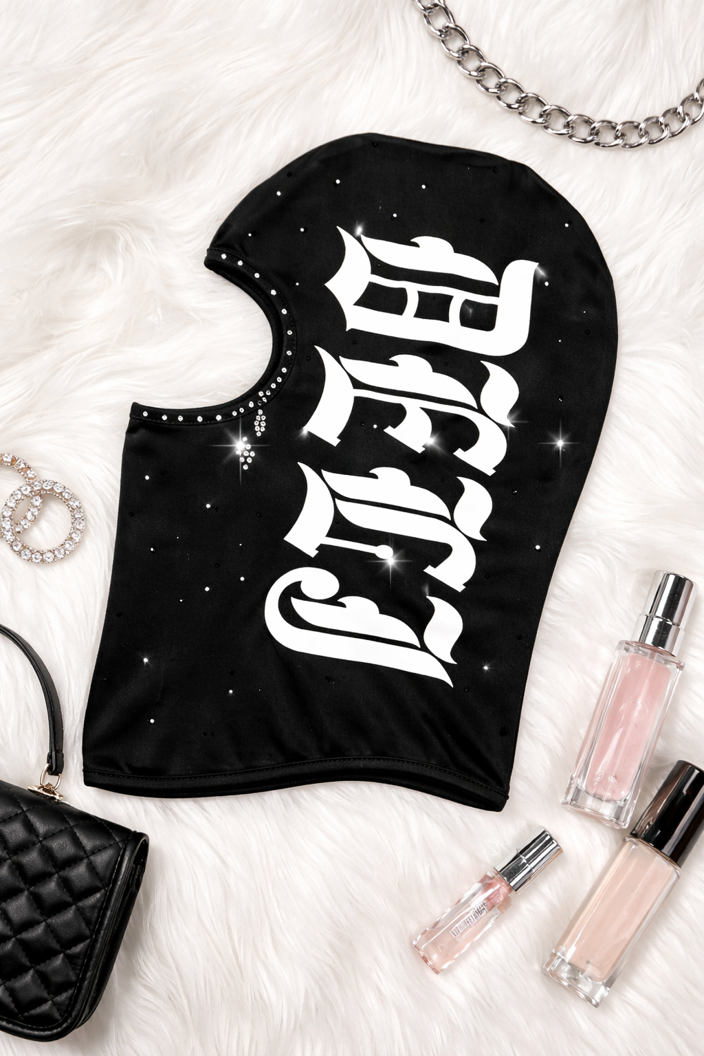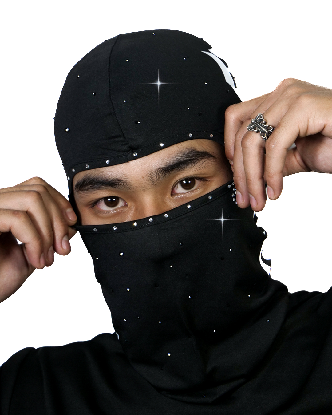 Ski mask mang phong cách Gothic / Dystopian streetwear, thiết kế tối giản nhưng tạo cảm giác bí ẩn, mạnh và khác biệt. Phù hợp cho outfit street, skate hoặc concept chụp hình tối – ngầu.