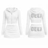 Set hoodie croptop và váy mini mang vibe Y2K street – bling luxury, nổi bật với logo DELI gothic đính đá rhinestone cùng chi tiết đá rải toàn bộ bề mặt tạo hiệu ứng lấp lánh. Thiết kế croptop ôm gọn phần thân trên kết hợp váy mini dáng gọn giúp tôn dáng, tạo tổng thể gọn gàng và nổi bật khi lên outfit.
